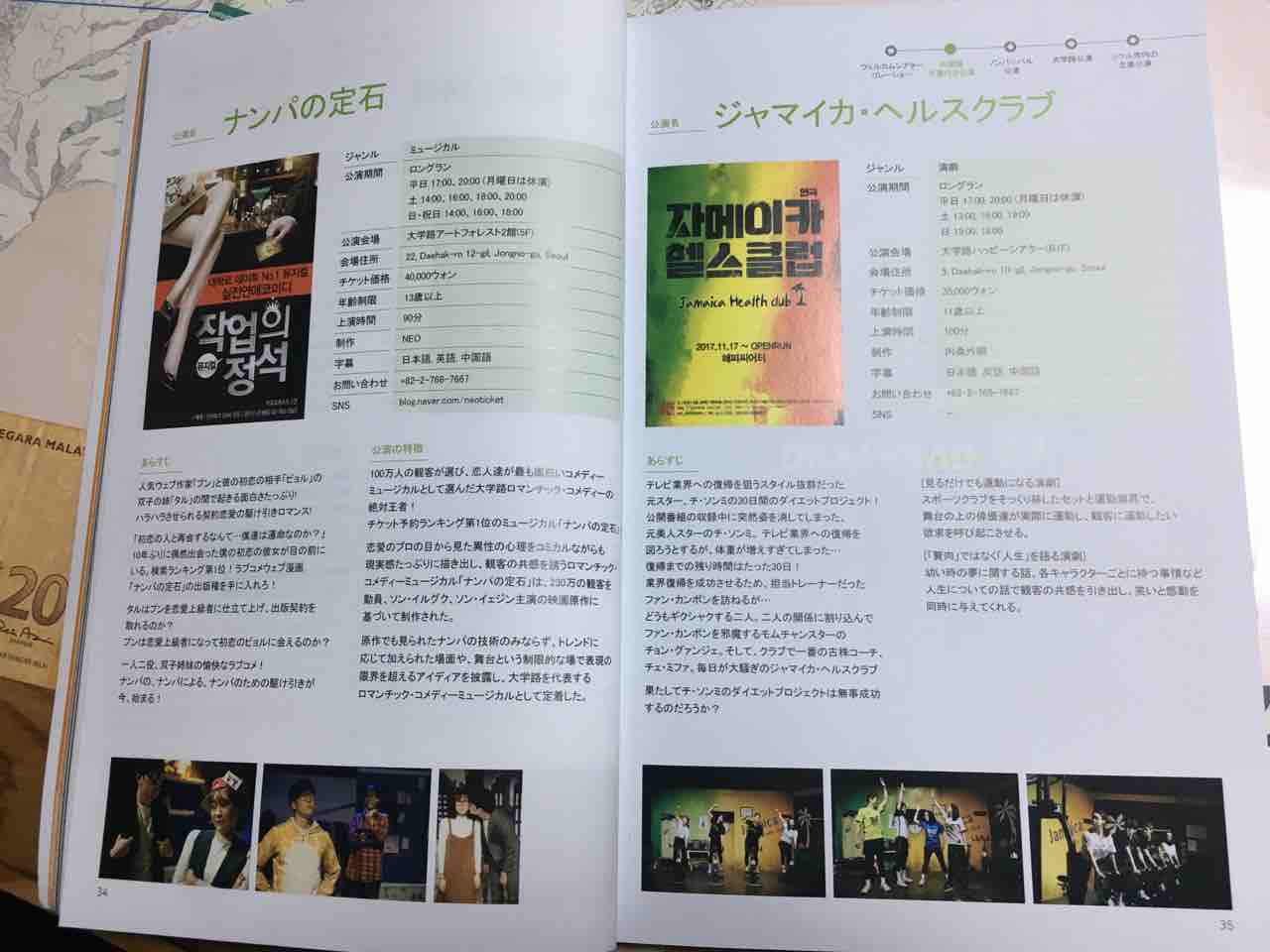ガイドブックはかなり充実していて代表的な韓国ミュージカルと演劇の解説を細かく書いてあります。
