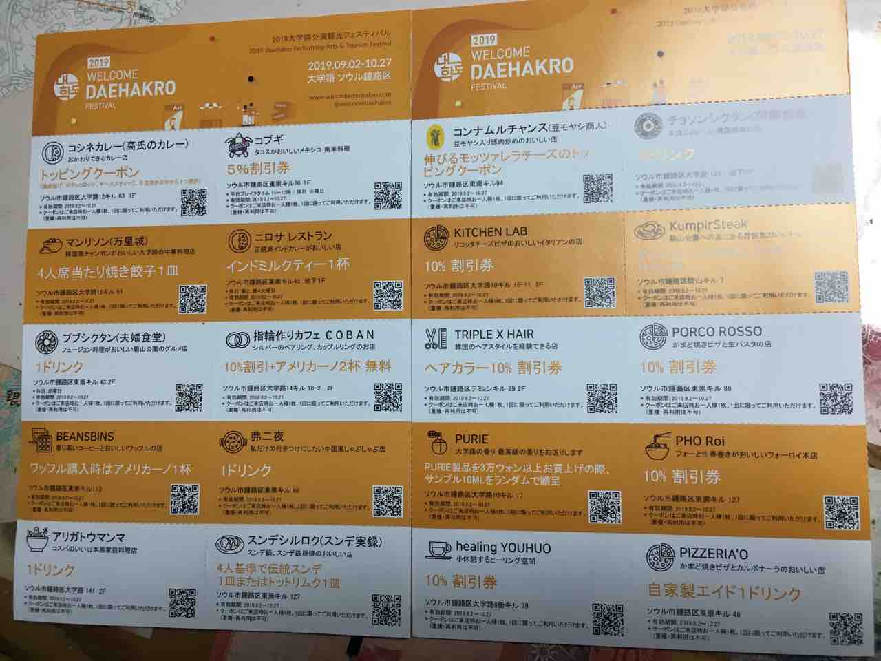 こちらは、大学路のお店のクーポン