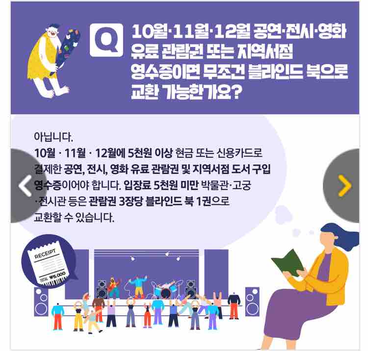 このイベントは、11月に買った書籍、公演、展示、映画の5000ウォン以上の領収書を持って行くと本と交換してくれるというイベントです。