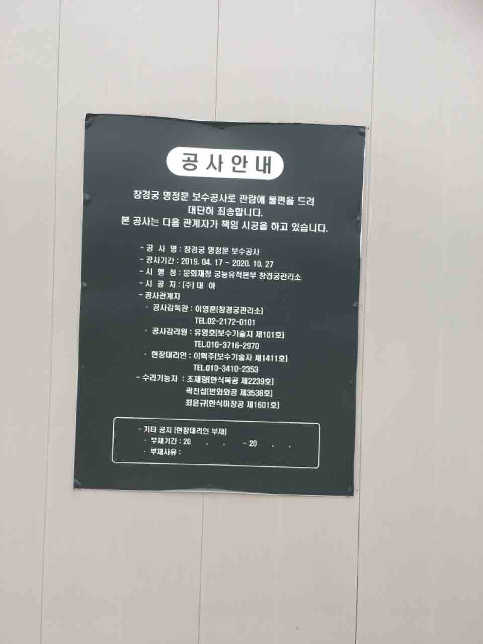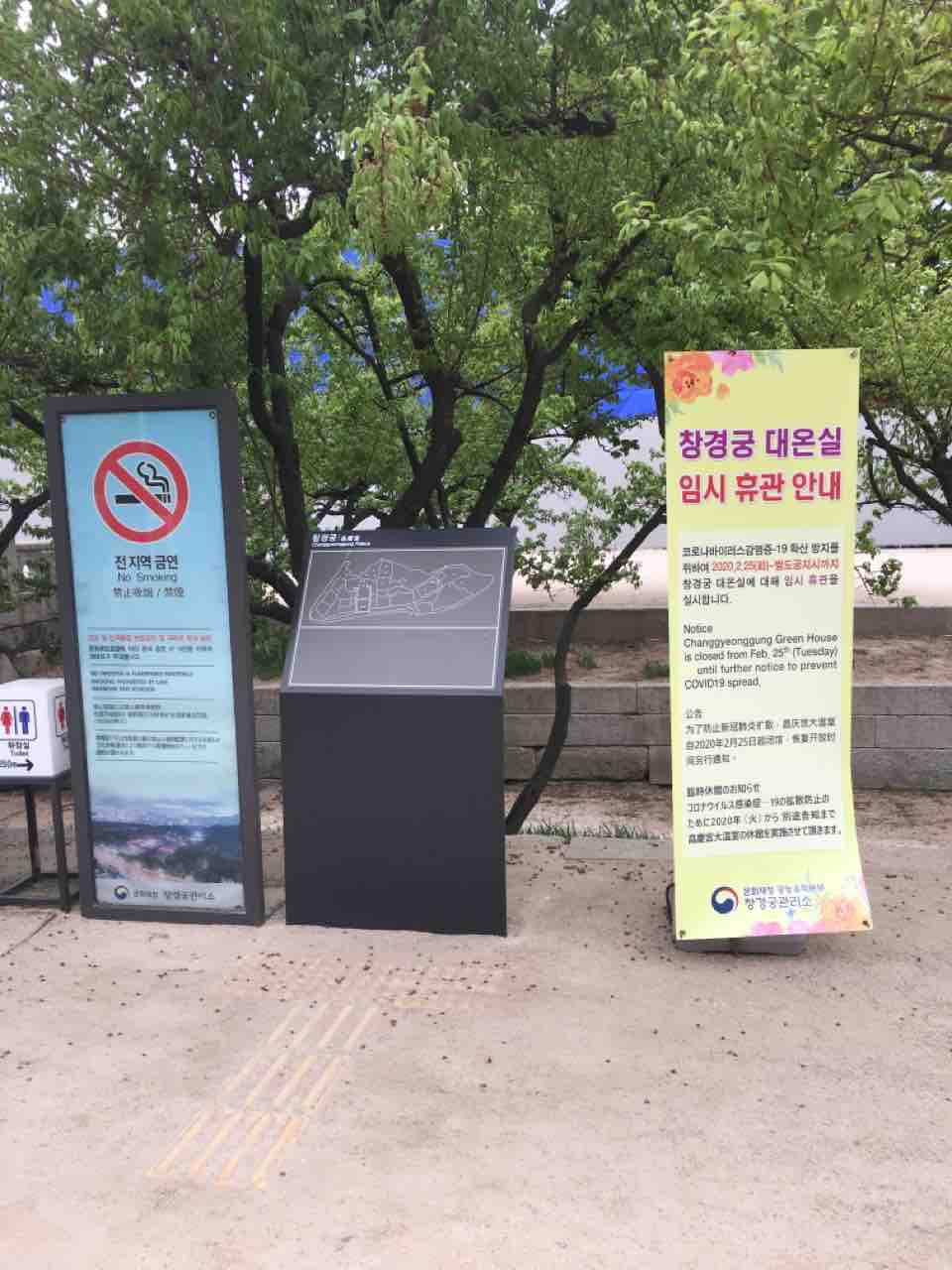 コロナ19感染予防のため、昌慶宮大温室は閉まっているという告知↓がしてありました。