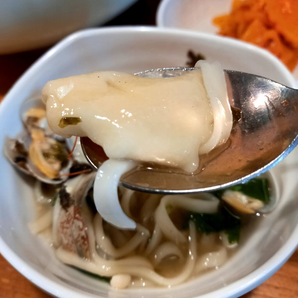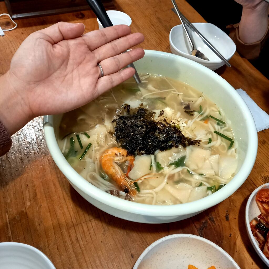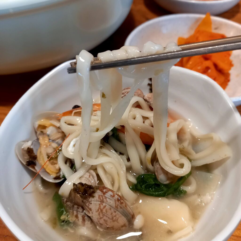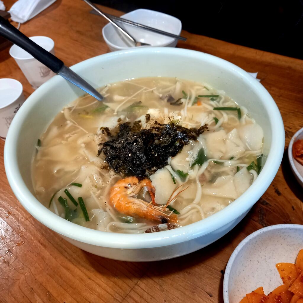 カルグクスもスジェビもモチモチ、形もバラバラでお母さんのスジェビって感じ