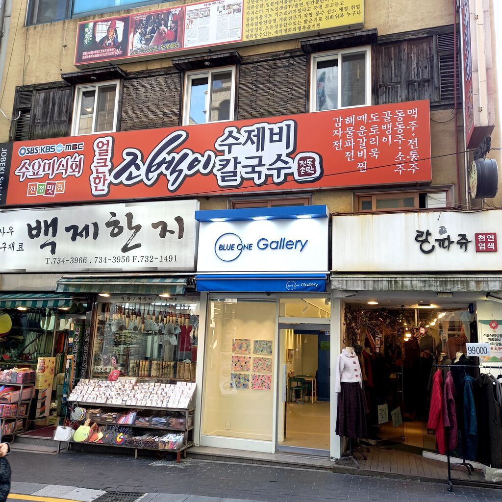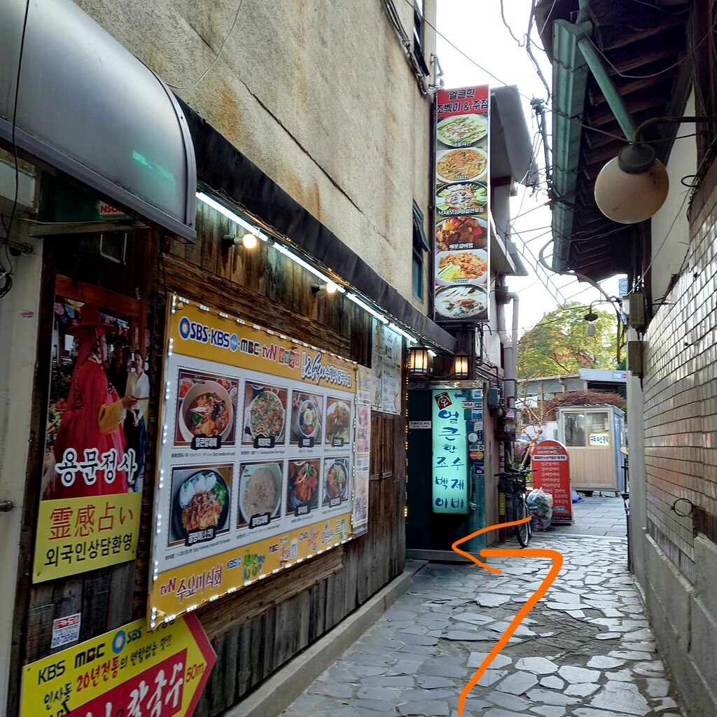 仁寺洞の通りで、有名なトルコアイス屋さんの交差点を鐘閣方面にしばらく行くと左手に赤い看板が見えてきます