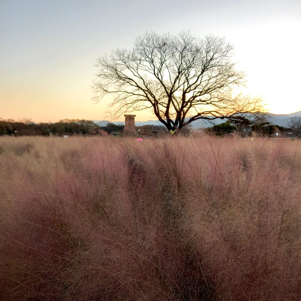 瞻星台以外にもこの公園は、春は菜の花、秋はピンクミューリーと葦畑になるのでインスタ映え写真を撮るにも最適