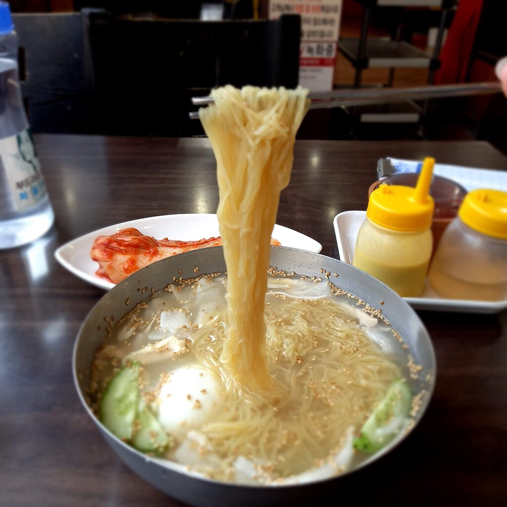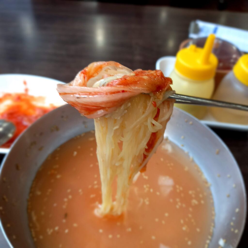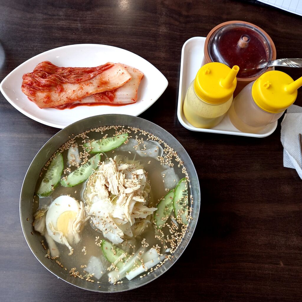 ほぐした鶏のササミが入ってる水冷麺のことをチョゲククスといいます。