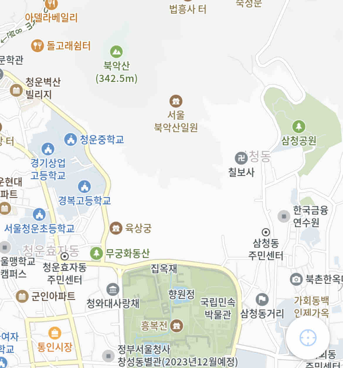 写真を見ていただくとわかるように青瓦台の後ろには、北岳山があります。
