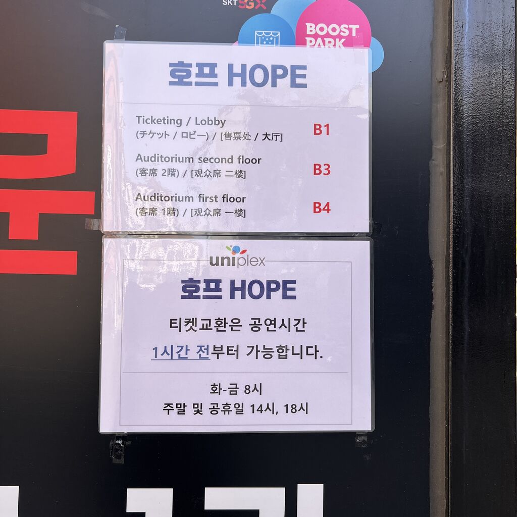 ユニプレックスの座席は奥に長いから平たい舞台はすごく見にくいんだけど、ホープの舞台は縦方向上方向に移動するから、ユニプレックスでもすごく見やすかった!