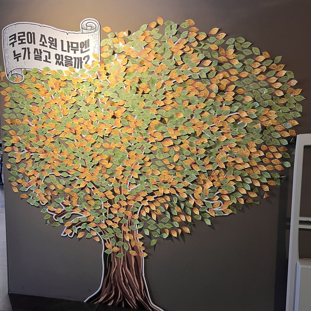葉っぱ型のポストイットに些細な願い事を書いて木の周りに貼る