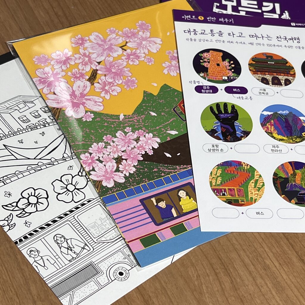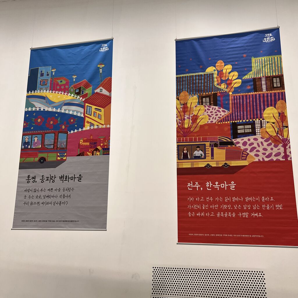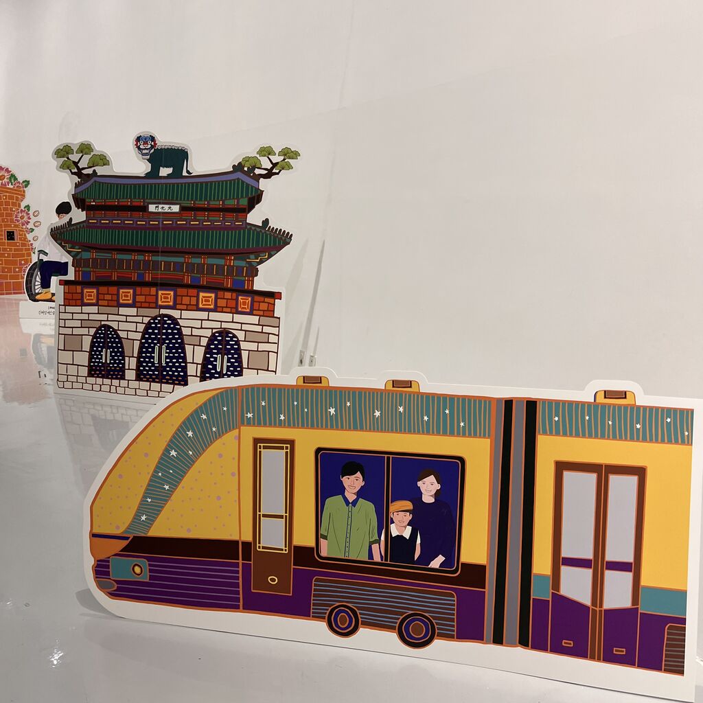 韓国の観光名所とバス、汽車のデザイン作品