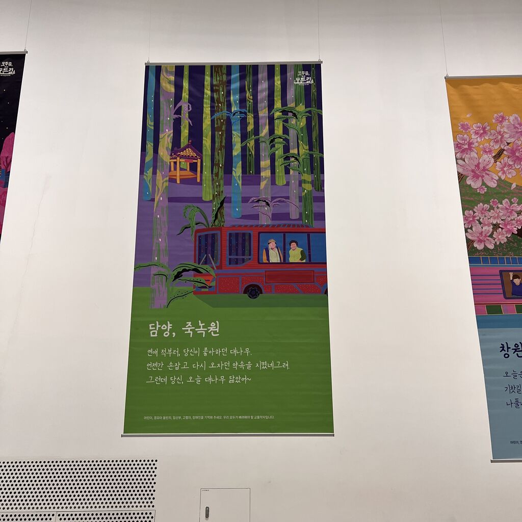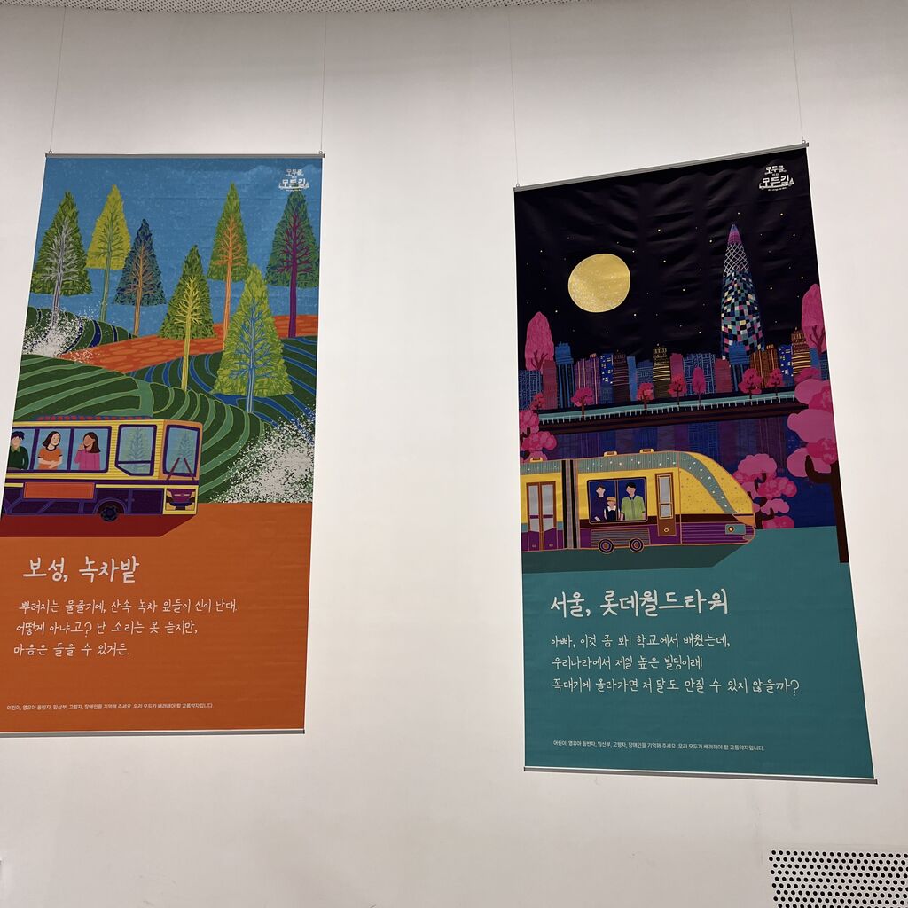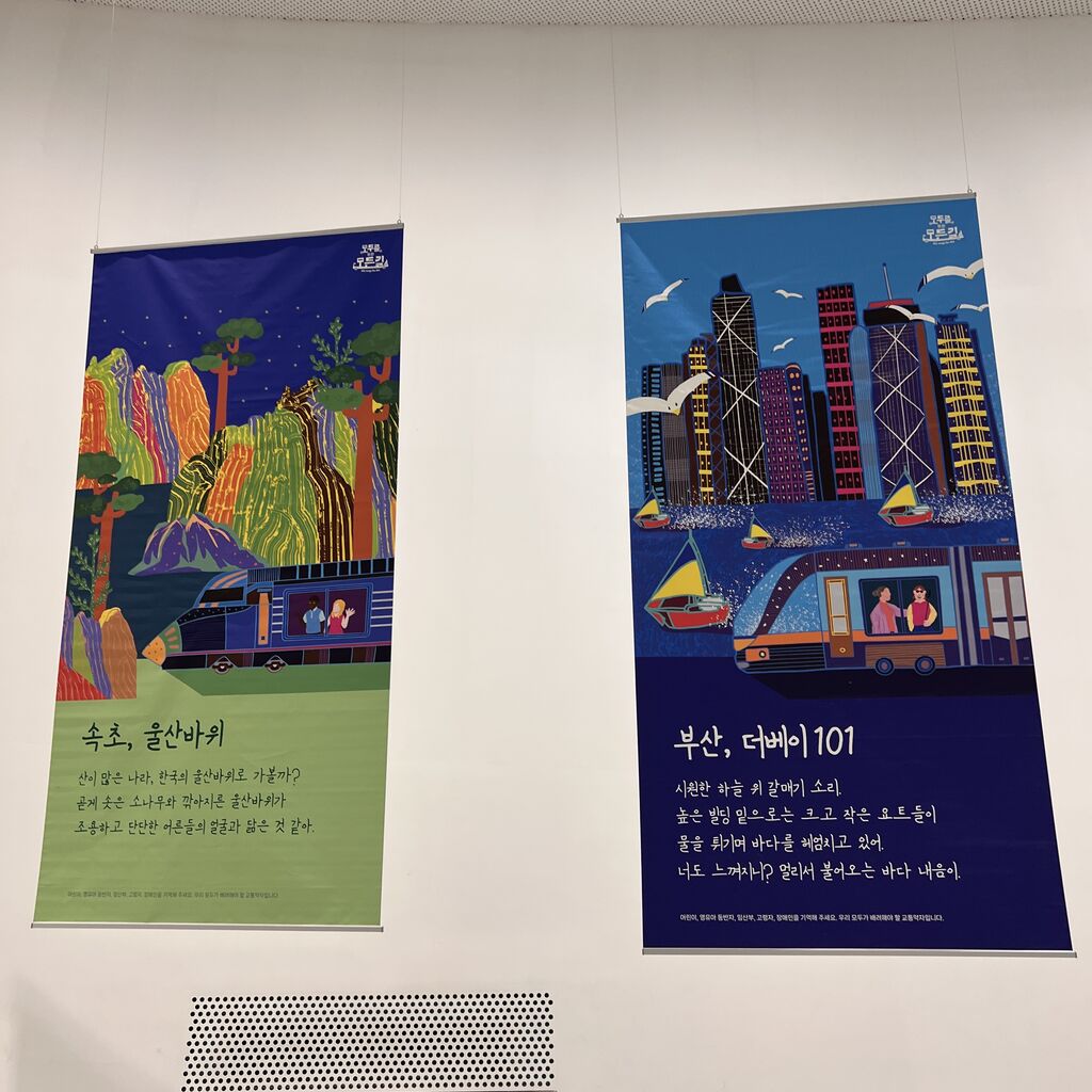 韓国の観光名所とバス、汽車のデザイン作品