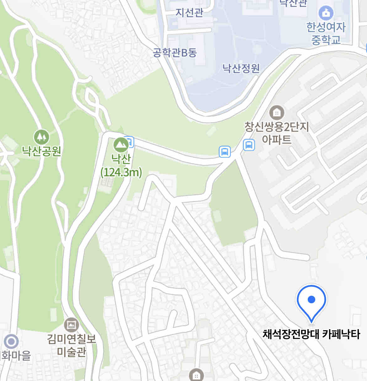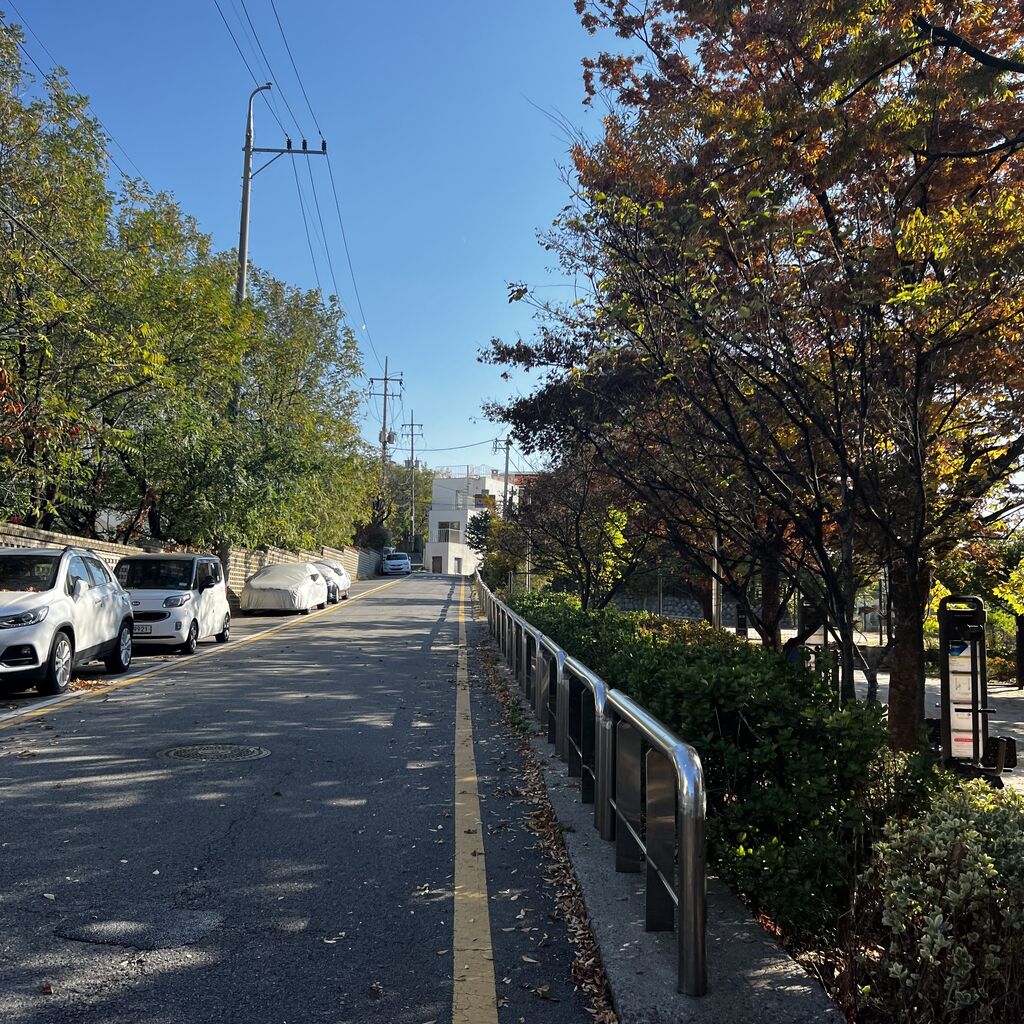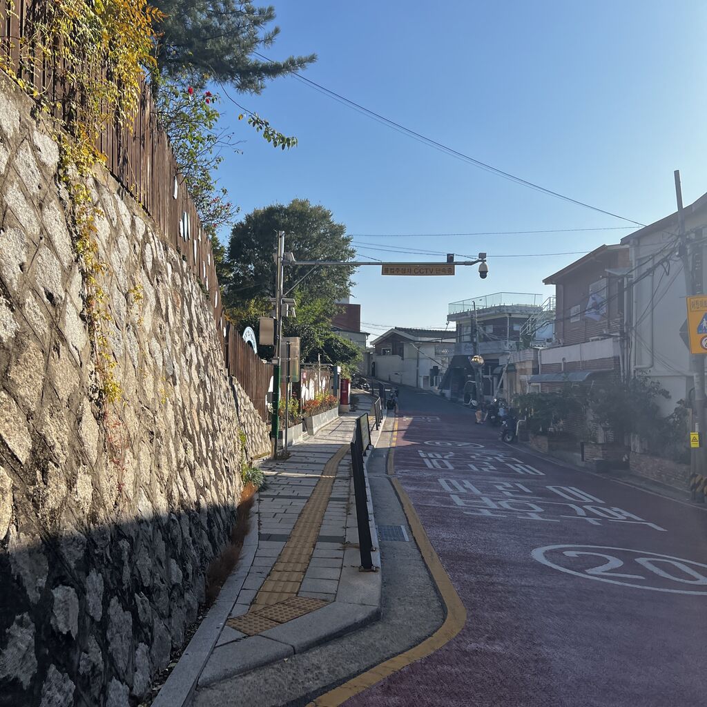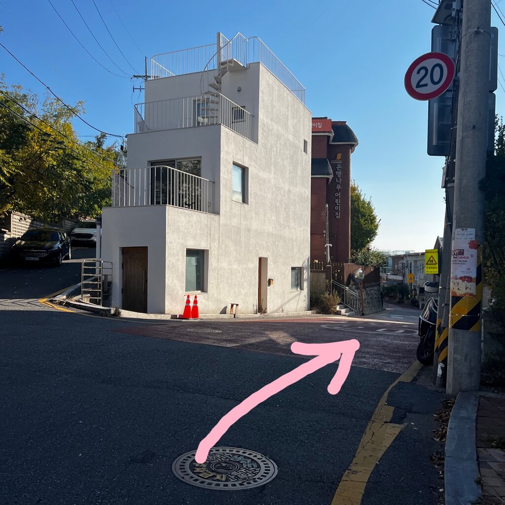 駱山三叉路(낙산삼거리)バス停が見えたら、その手前を曲がります。