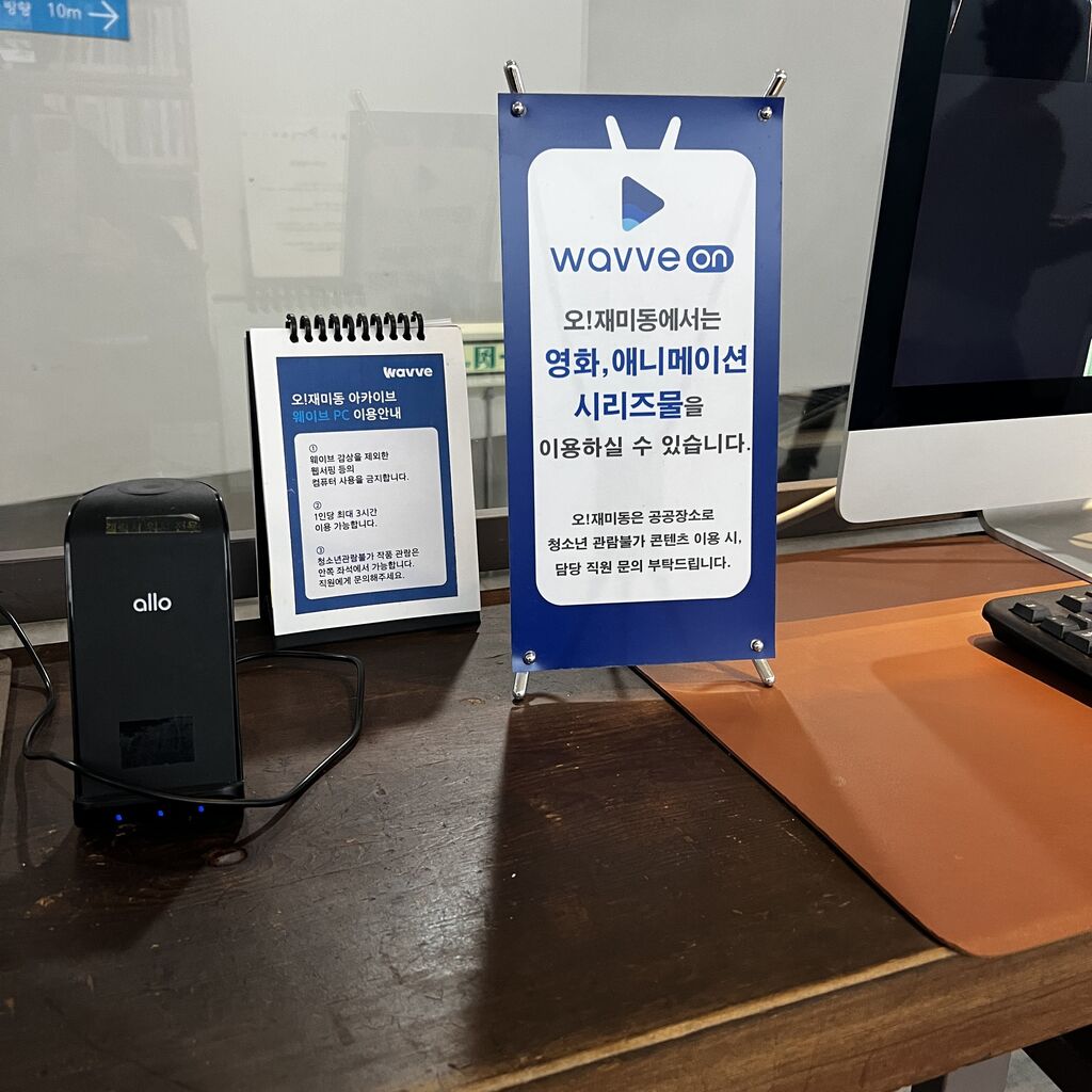 Wavveカウンターには、Wavve用のPCが2台置いてあって最新映画、放送中のKBS、MBC、SBSのドラマを視聴できます。