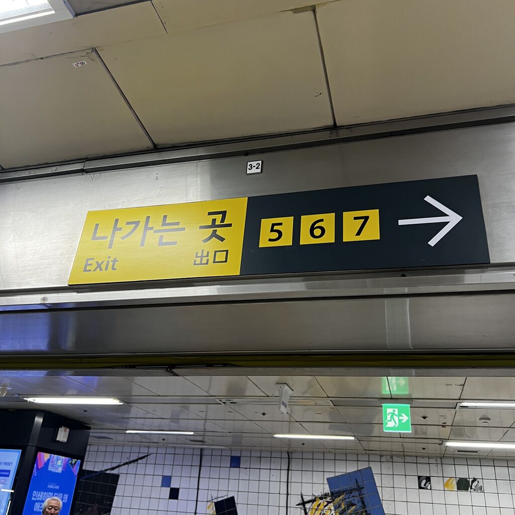 忠武路駅の3、4、5、6、7番出口方面の