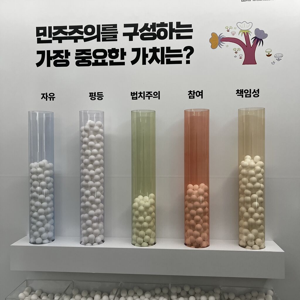 1つ目の展示は、簡単な言葉や体験を通して民主主義を感じられるように作られてる