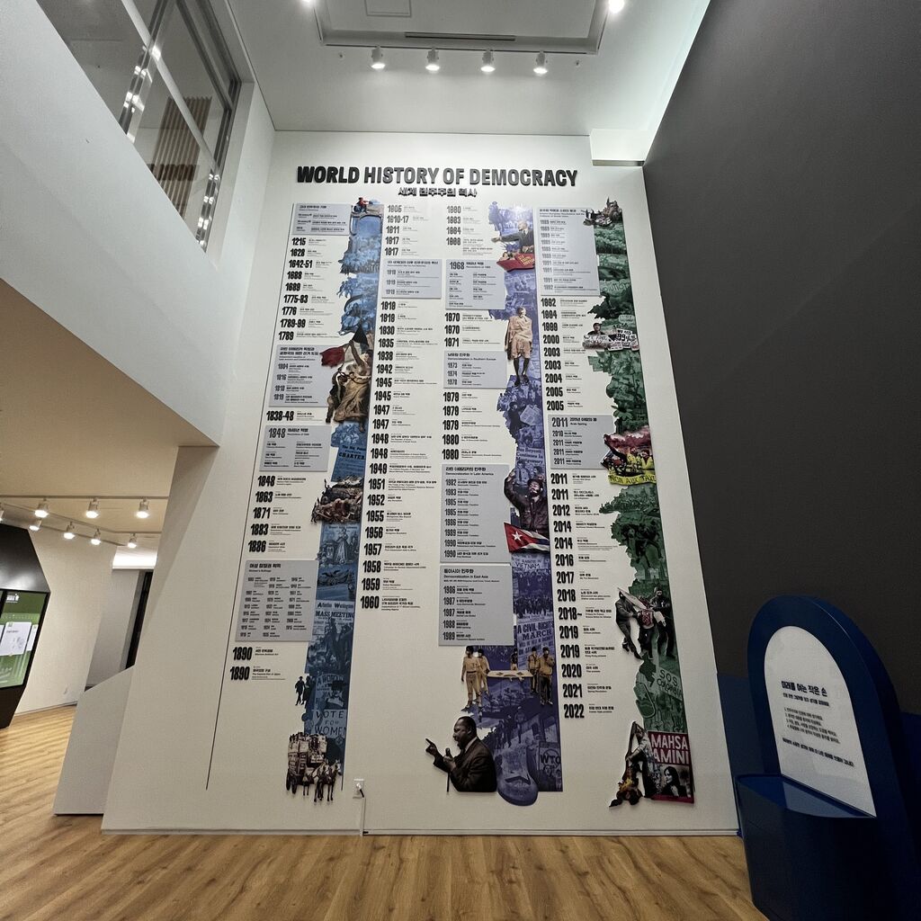 過去の新聞や絵画を通して、民主主義がどのように育ってきたかを順番通りに観覧できます。