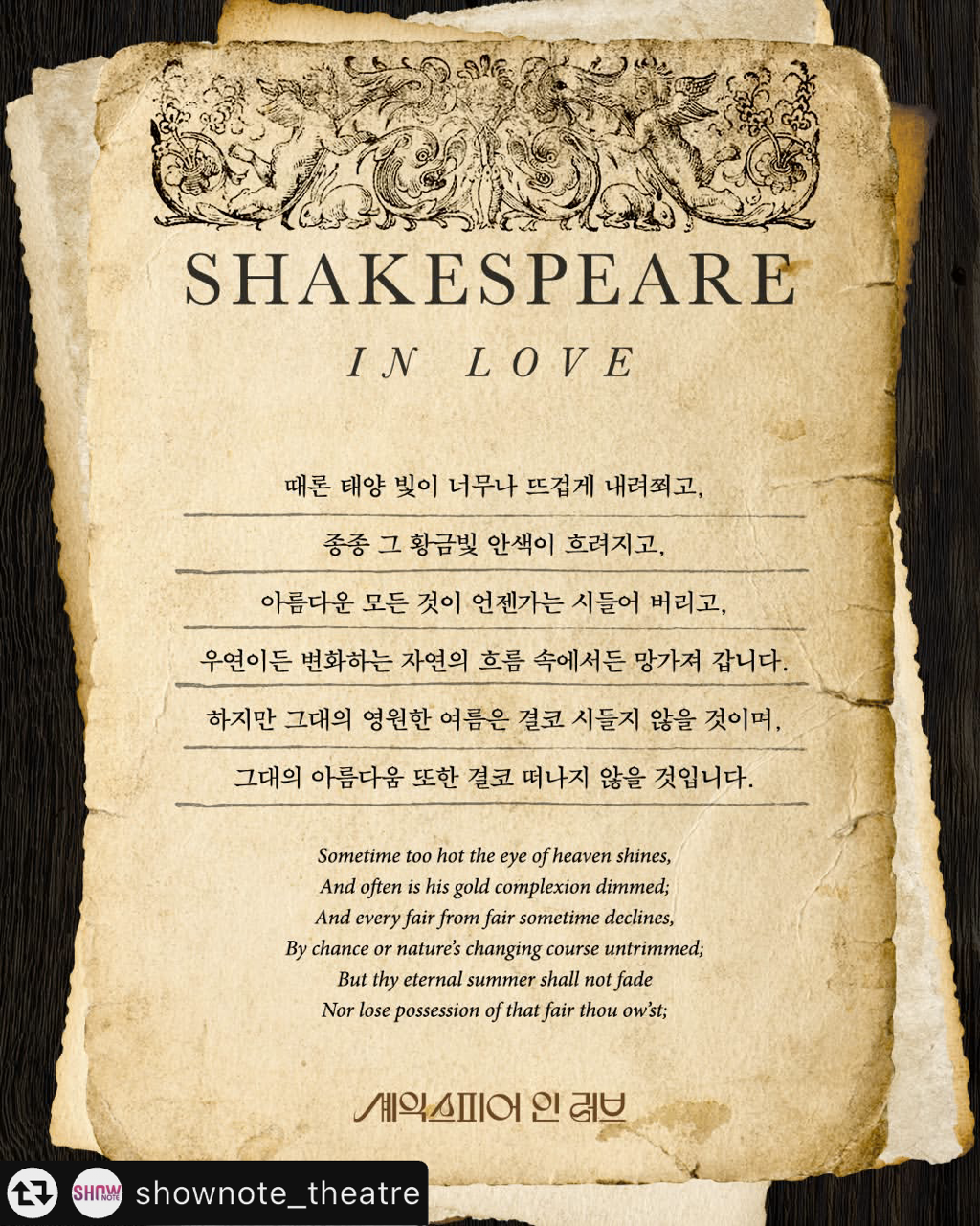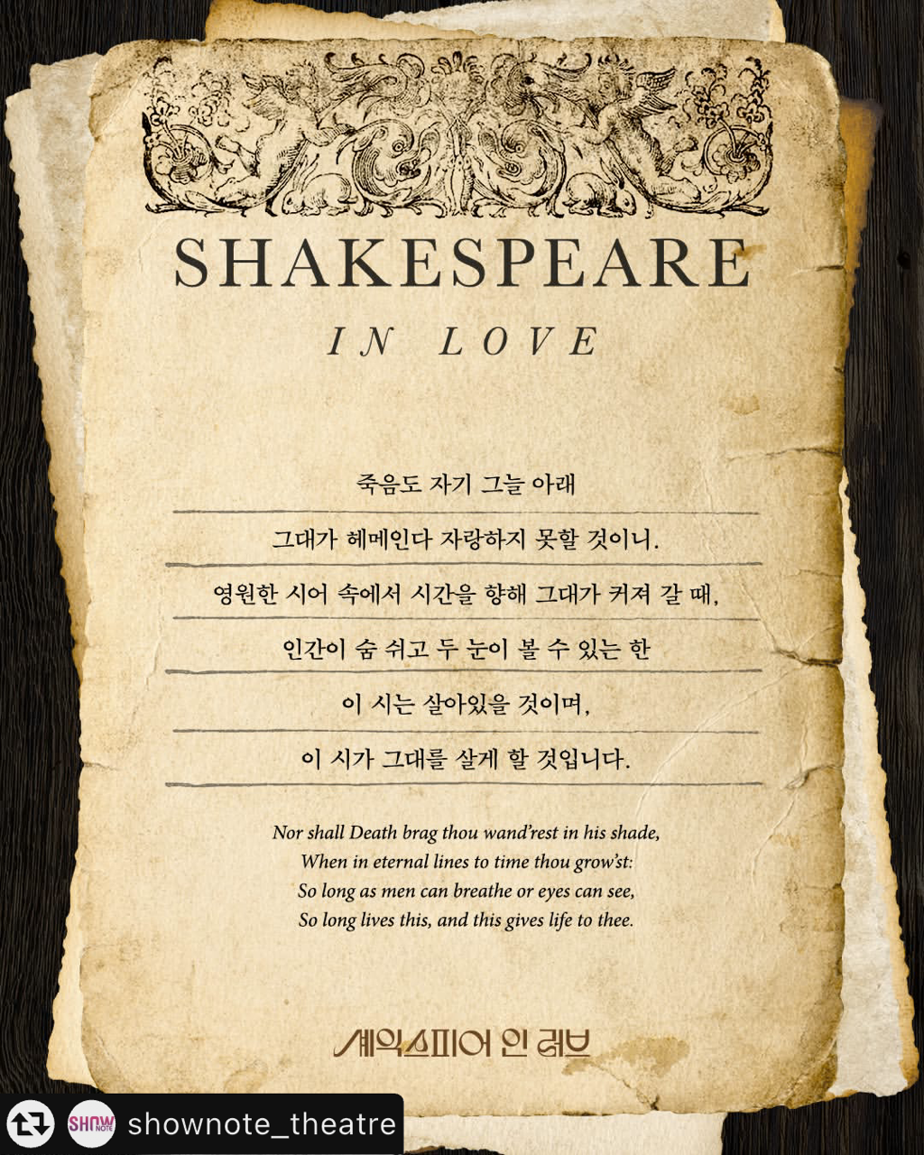韓国演劇「シェイクスピア・イン・ラブ」 フォトスポット&登場人物の紹介 恋に落ちたシェイクスピア 연극 셰익스피어 인 러브 - ソウルに暮らす演劇オタクなブログ https://t.co/I692tmuX4b #韓国演劇