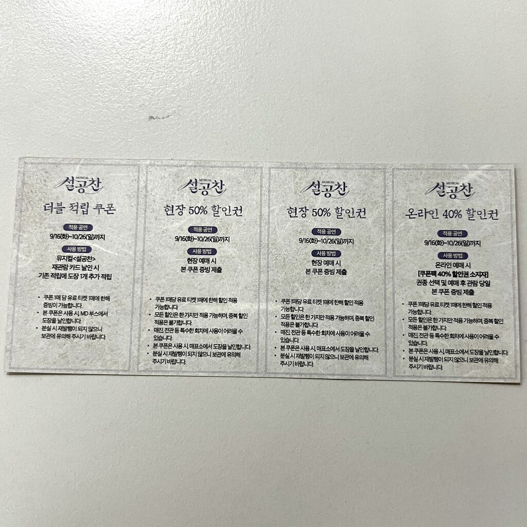 (ダブル積立券、当日券50%割引券、オンライン40%割引券)