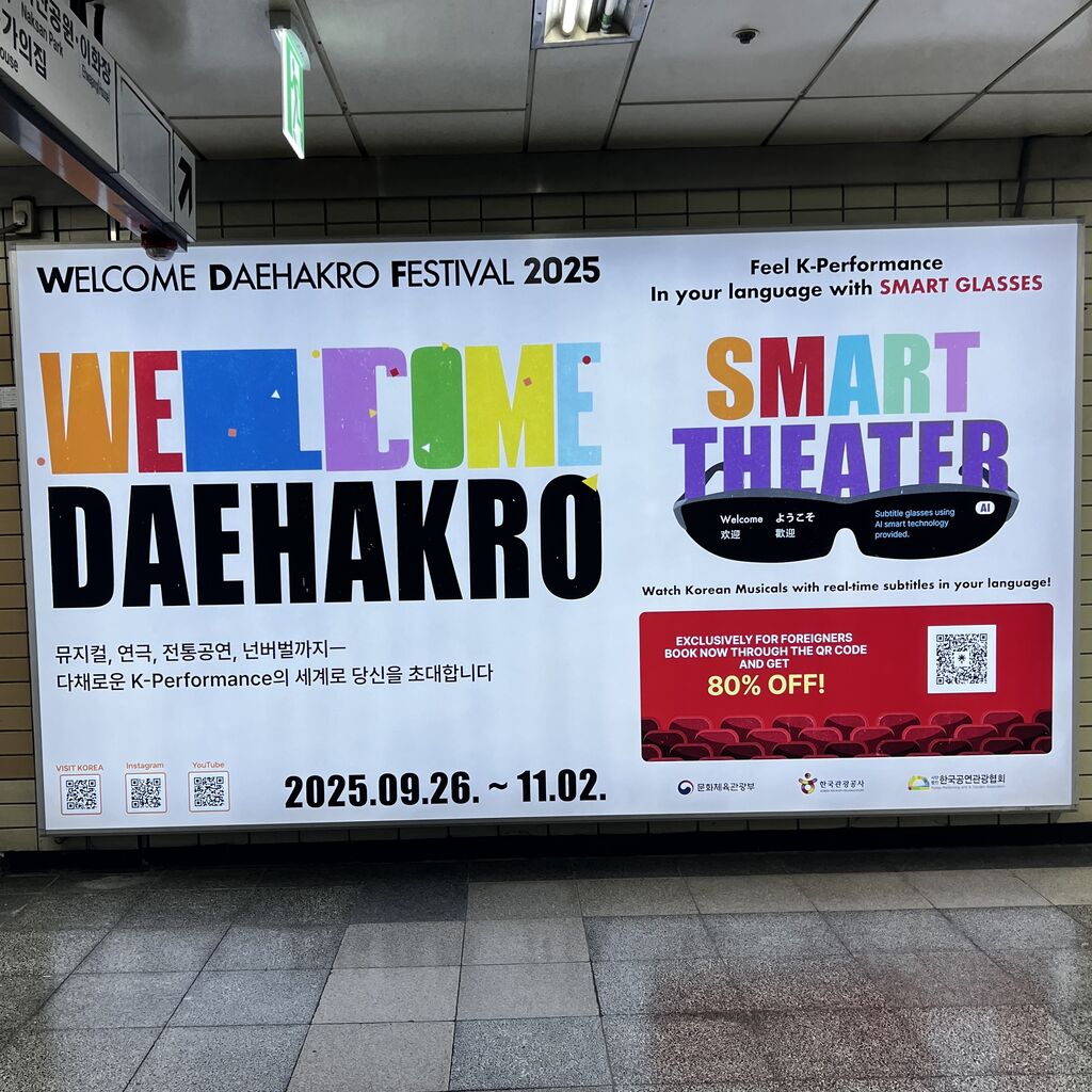 2025ウェルカム大学路 多言語字幕グラスでスマートシアターを体験してきたよ! 2025공연관광축제 웰컴대학로 페스티벌 - ソウルに暮らす演劇オタクなブログ https://t.co/sLd6HUTPWA #韓国公演 #ウェルカム大学路