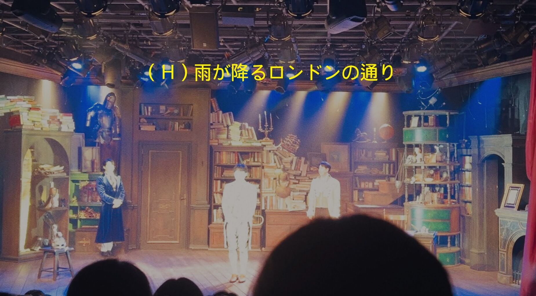 この写真だとステージが明るいのでちょっと見にくく感じるかもしれないけど、上演中は全体が暗いので字幕ははっきり見えます。